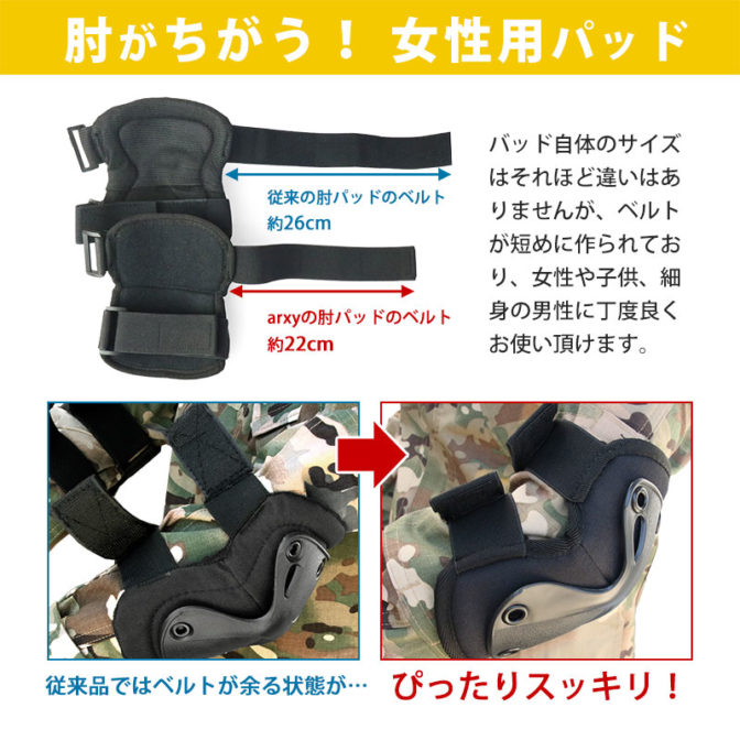 女性や子供、細身の男性にぴったりフィット! SHENKEL arxy レディース エルボー & 二ーパッドセット OD/BK 防具 膝当て 肘当て レディース 女性 女 子供 サバゲー サバイバルゲーム 装備 アメリカ軍 肘 膝